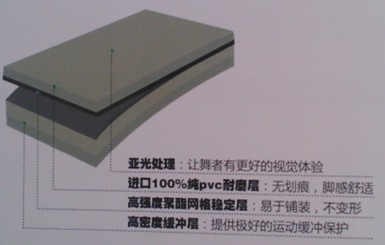 進口舞蹈地膠的材質主要分為:面層、礦物纖維層及發泡層。